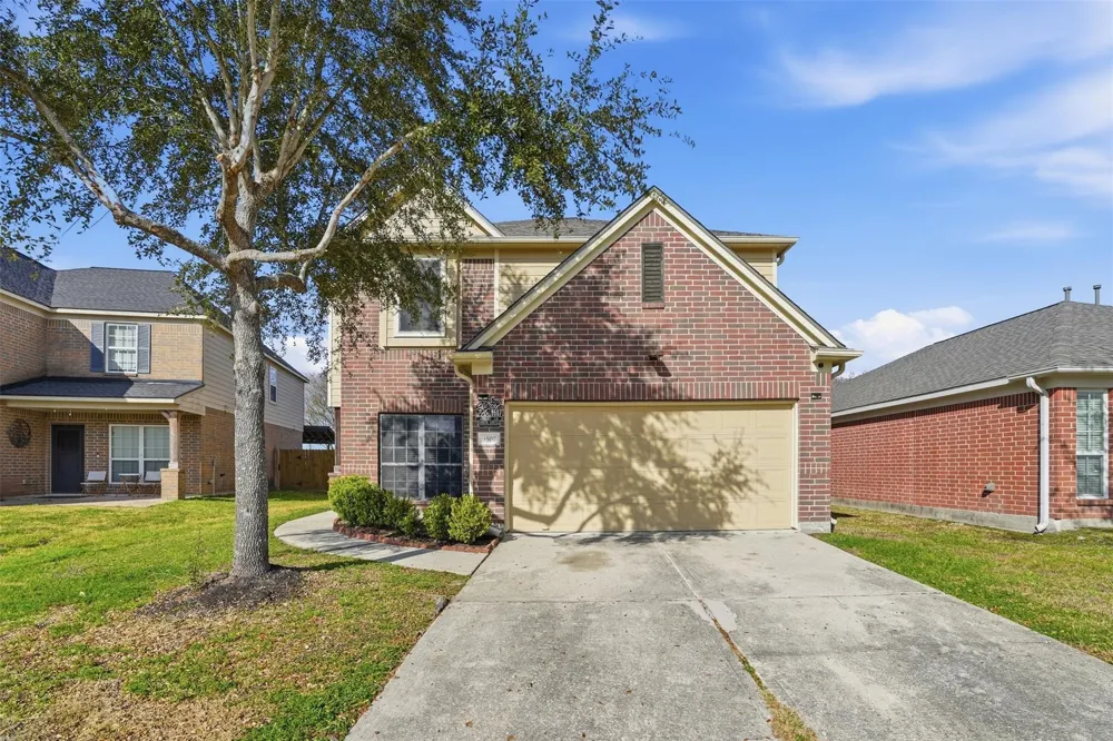 Nestled in the Woodland Pines subdivision, this two-story brick home offers 4 bedrooms, 2½ baths and about 2,575 sq ft of living space. Built in 2009, it opens with a covered entry and manicured front lawn. Inside, the foyer flows into a bright living room with neutral carpet and large windows. A formal dining area sits just off the family room. The kitchen features ample cabinetry, extensive counter space and a breakfast nook overlooking the backyard. The primary suite is on the main level and the bath includes a double vanity and tub/shower. Upstairs are three secondary bedrooms, a game room, full bath and utility room. Enjoy a fenced backyard with patio, perfect for grilling and play, plus a two-car garage. The home is minutes from Hwy 59/I-69, shopping and schools ideal for commuters.